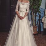 Abito da sposa Trento su misura stile principessa, realizzato in tulle e raso con corpetto stretto interamente ricamato con pizzo, perline e paillettes. La gonna in tulle è morbida e ampia. Chiusura sul retro con i lacci. L’abito sarà realizzato appositamente per te e cucito sulle tue misure. Per ottenere l’effetto principesco della foto è necessario indossare una sottogonna.