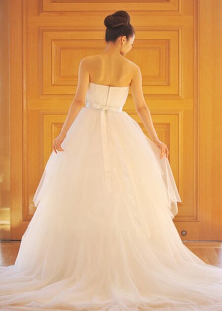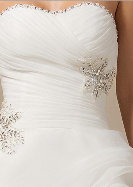 €427.78Abiti da Sposa, Abiti da Sposa Collezione 2026, Abiti da Sposa Corti, Abiti da Sposa Economici, Abiti da Sposa per Matrimonio Civile, Abiti da Sposa Scollo a Cuore, Abiti da Sposa SmanicatiAbito da sposa asimmetrico su misura corto sul davanti e con strascico sul retro, realizzato in organza