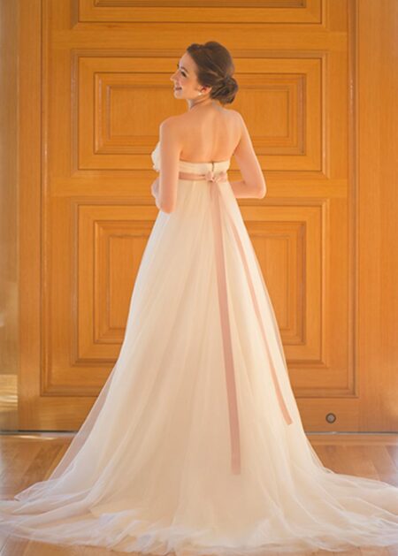 €352.98Abiti da Sposa, Abiti da Sposa Collezione 2026, Abiti da sposa donne incinte, Abiti da Sposa Economici, Abiti da Sposa per Matrimonio Civile, Abiti da Sposa Smanicati, Abiti da Sposa Stile Impero, Abiti da Sposa Vintage, Abiti sposa Boho Shabby ChicAbito da sposa stile impero, perfetto per donne incinta realizzato in tulle e raso con strascico corto