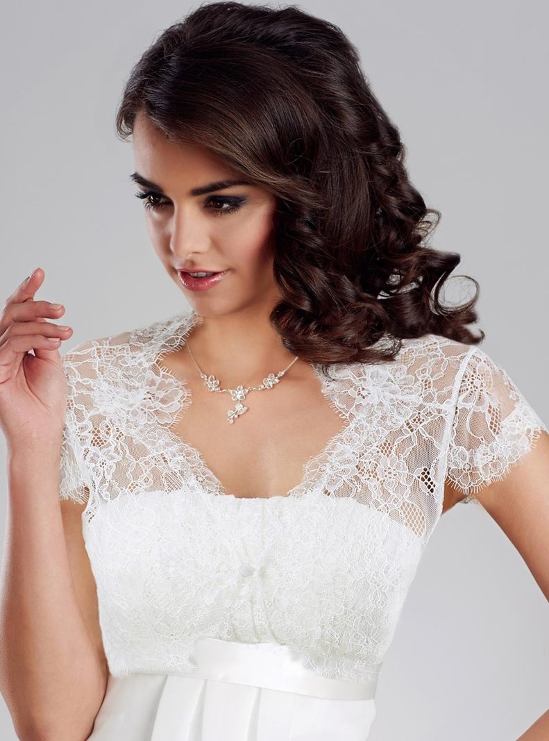 Coprispalle da sposa in pizzo con maniche a cappuccio vendita online